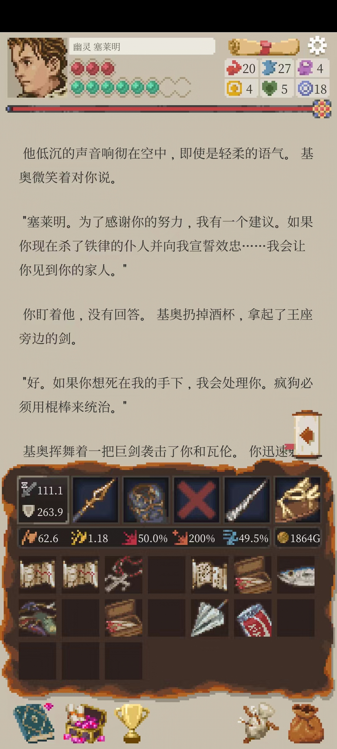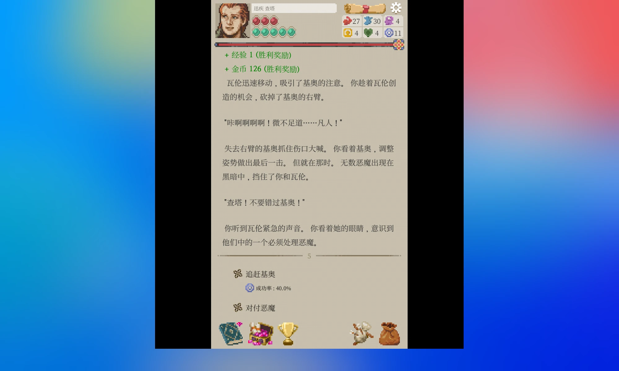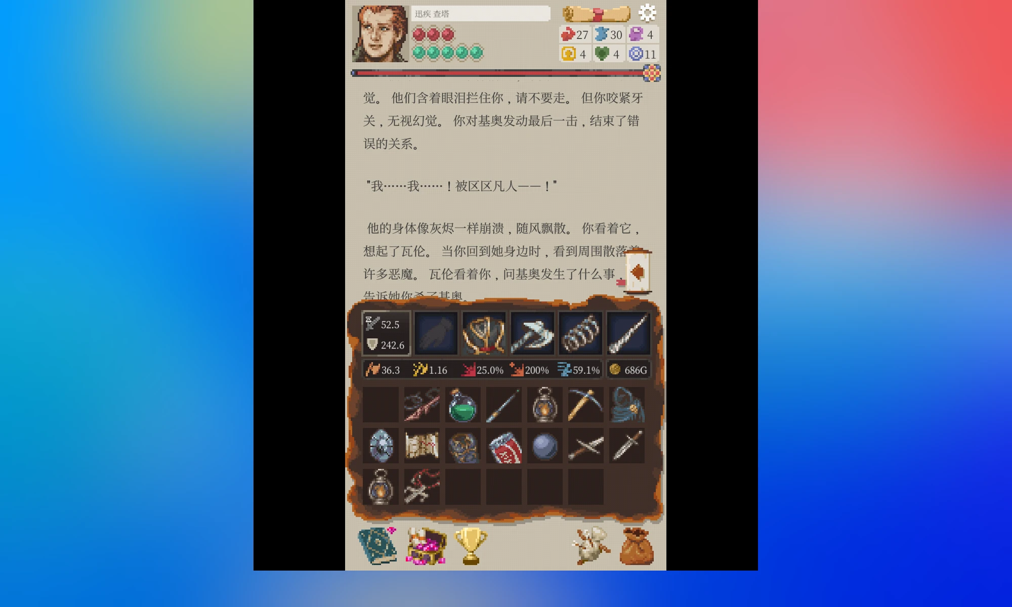 看图,护甲加10闪避,搭配遗物,闪避率已经近60%。60%的闪避率其实还不算高,但模拟战打了几次都能过(虽然显示胜率只有10%左右)