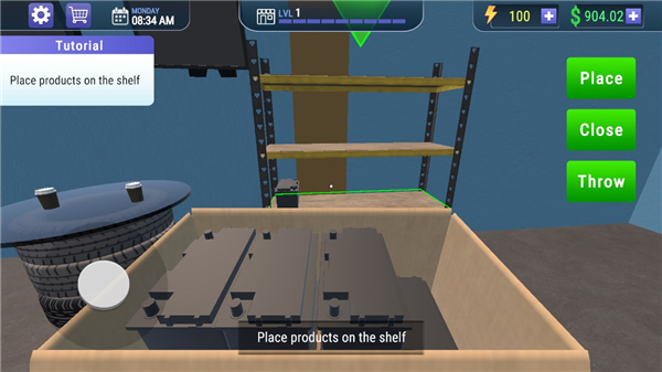 5、将货物拿到货架,点击place进行放置;
